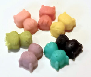 通常、チョコレートの着色には、油脂系に分散するよう設計された「チョコ用色素」を使います。