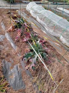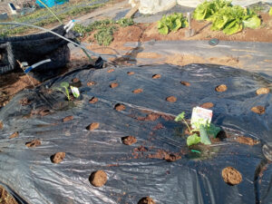 新しく2株植えました。マルチは余ってた穴あきマルチを。