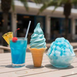 一方で、青色の食品は少ないのが現実です。自然界で青い食べ物は珍しく、そのため青色は「人工的」「非日常的」という印象を与えやすくなります。ラムネやソーダ味の青い飲み物は、見た目の爽やかさや冷たさを演出する典型例です。