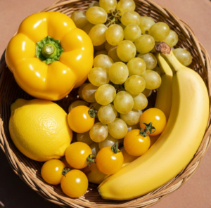 黄色やオレンジは、太陽や光を連想させる明るい色です。柑橘類やパプリカ、カボチャなどに見られるこの色は、元気や陽気さ、健康のイメージを引き出します。食品では、ジュースやスナック菓子、カレーやスープなど、日常的に楽しい気分を演出したい食品によく使われます。