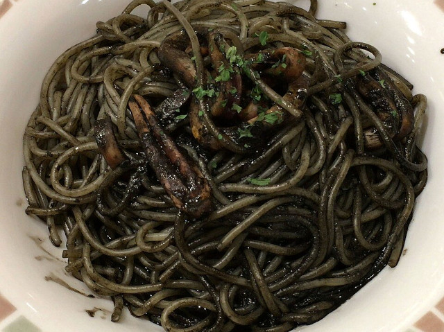 イカスミ色素は主にイカ類(例:コウイカ、ヤリイカ)の墨嚢から得られる天然の褐色〜黒色色素で、メラニンが主成分です。地中海地方では中世からパスタやリゾットなどに利用されています。